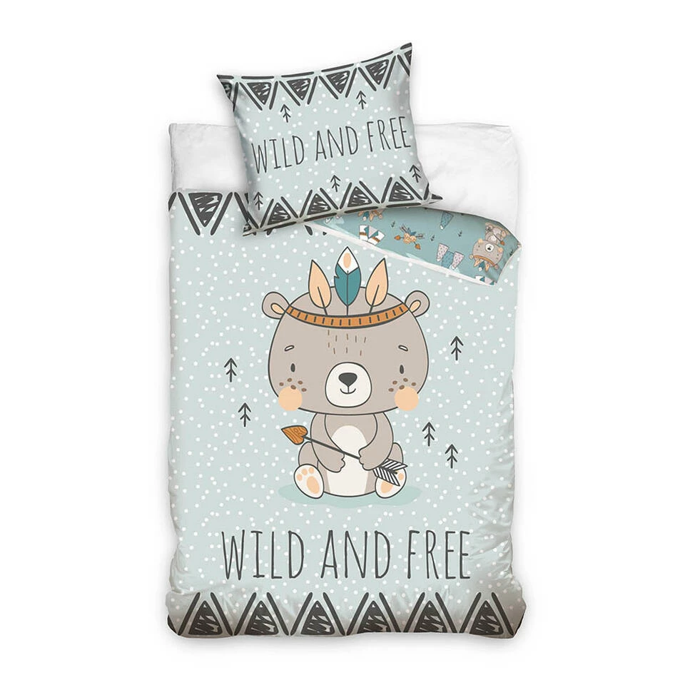 Animal Pictures Dekbedovertrek Wild and Free. Het beertje heeft zich verkleed als een indiaantje met een fantastische verentooi! De achterkant van het dekbedovertrek heeft een verschillend patroon, leuk om bij het opmaken het dekbed daarom een stukje open te slaan. Of gebruik hem tweezijdig. De keuze is aan jou!