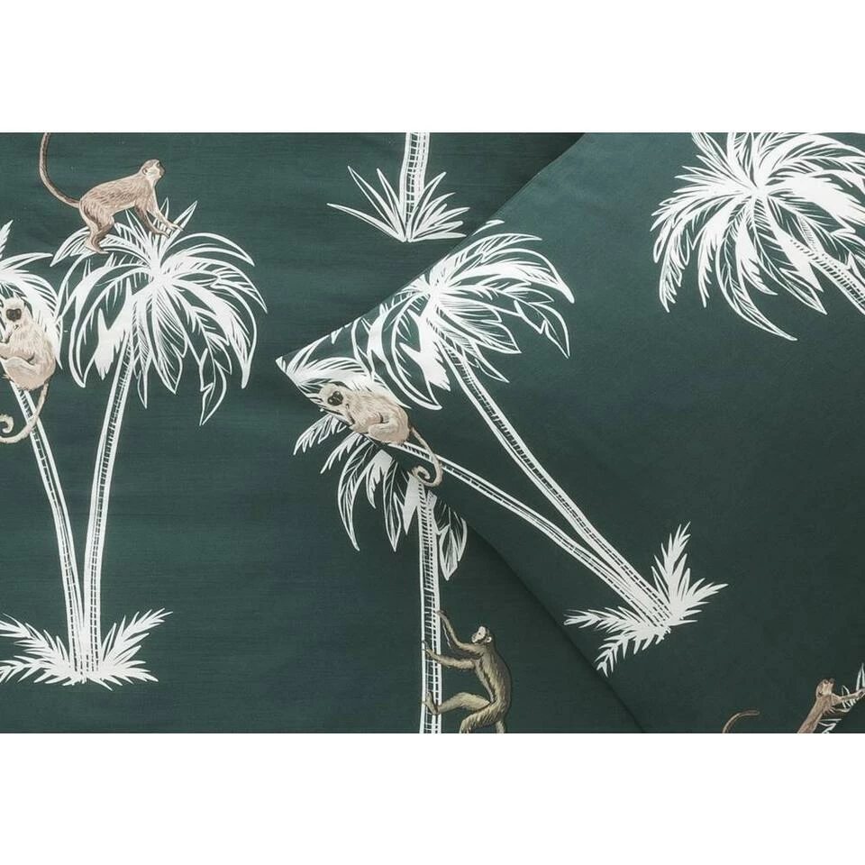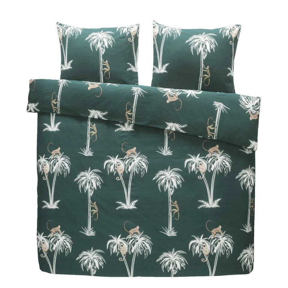 Dekbedovertrek Nya is groen met palmbomen en dierendessin. Nya heeft een afmeting van 200×200/220 cm. Het dekbedovertrek is gemaakt van heerlijk zacht katoen en heeft een dubbel doorlopende instopstrook. Hierdoor is hij geschikt voor dekbedden met een lengte van 200 cm en 220 cm. Kruip jij er straks heerlijk in weg?