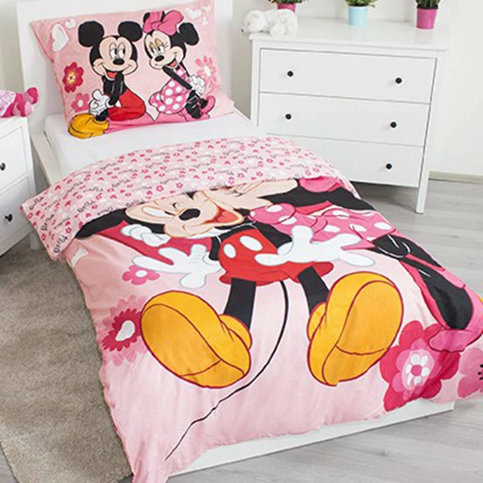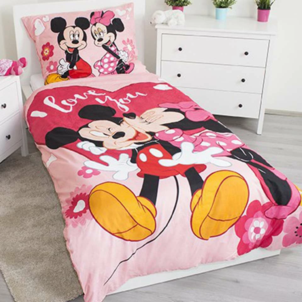 Disney Minnie Mouse Dekbedovertrek I Love You. Dit dekbedovertrek heeft een lieve afbeelding van het schattigste Disney stel: Minnie en Mickey. Dit overtrek vrolijkt elke kamer op en is een mooi cadeau voor iedere Minnie en Mickey fan!