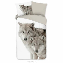 Dekbedovertrek “Fera” van Good Morning met wolven in de sneeuw, in de kleur “Zand” is gemaakt van 100% geruwde 100% Cotton/ Flannel. Deze warme, zachte stof is zeer geschikt voor de wintermaanden, ademend en vocht absorberend.