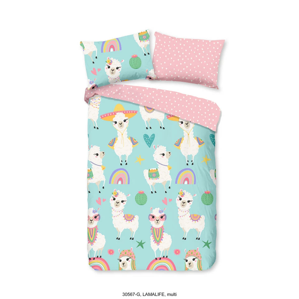 Dekbedovertrek “Lamalife” van Good Morning met alpaca’s, in de kleur “Multi” is gemaakt van 100% Cotton. Deze kwaliteit is ademend, vocht absorberend en voelt zacht en soepel aan.
