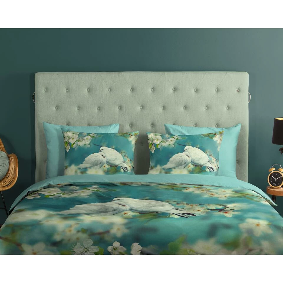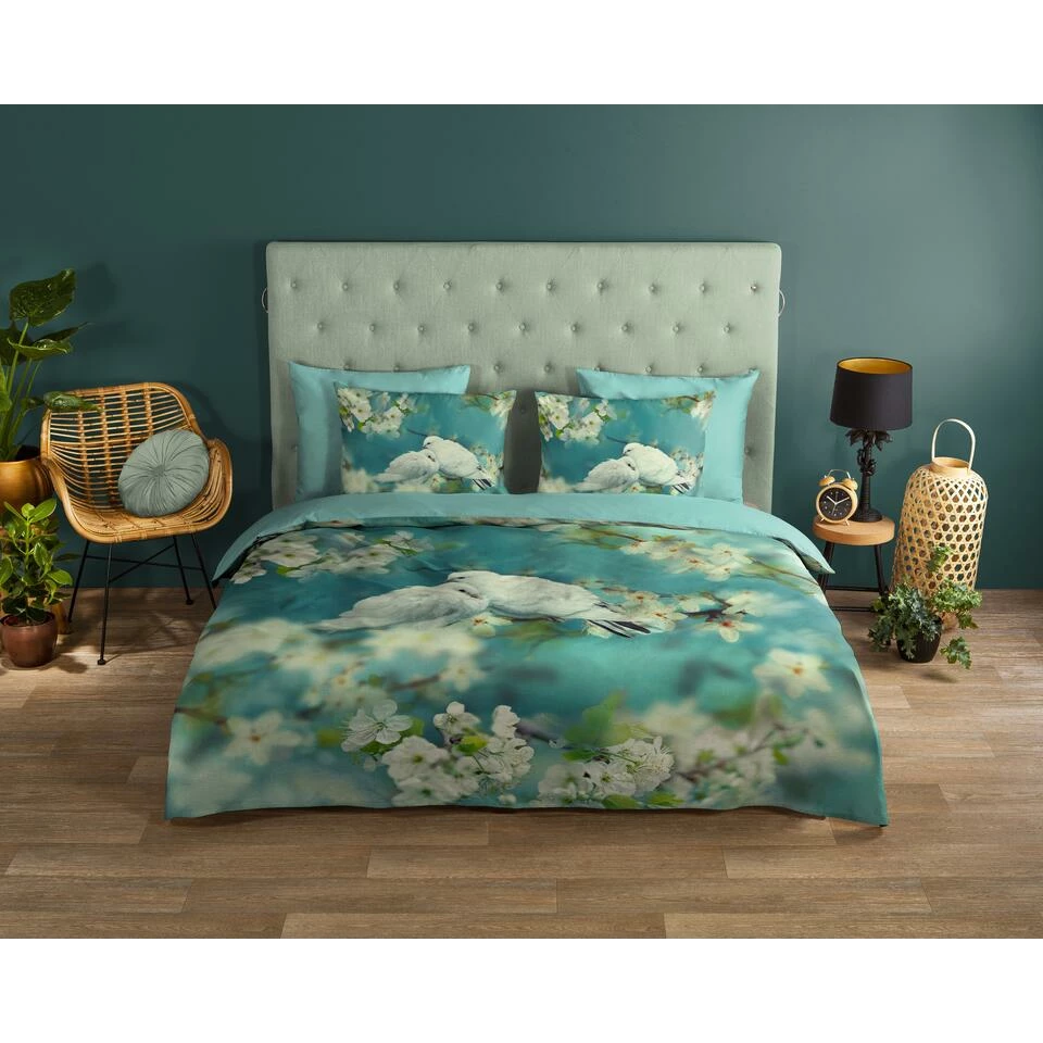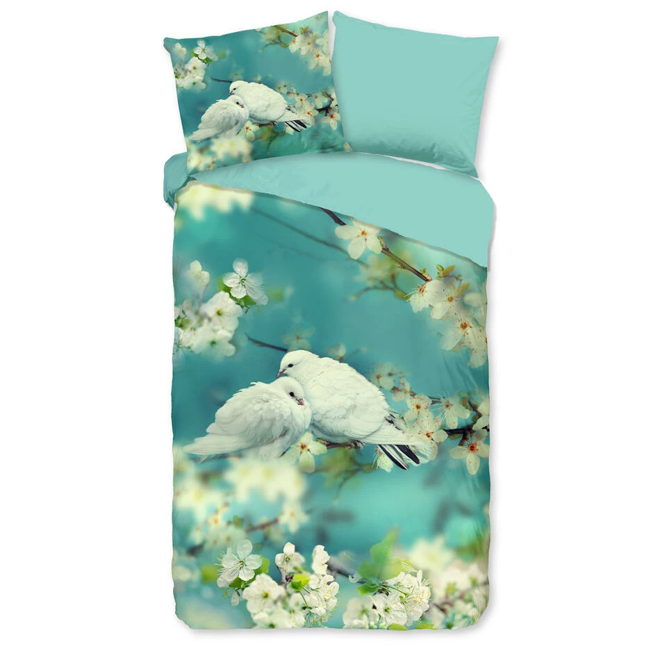 Dekbedovertrek “Loving” van Good Morning met vogels, in de kleur “Aqua” is gemaakt van 100% Cotton. Deze kwaliteit is ademend, vocht absorberend en voelt zacht en soepel aan.