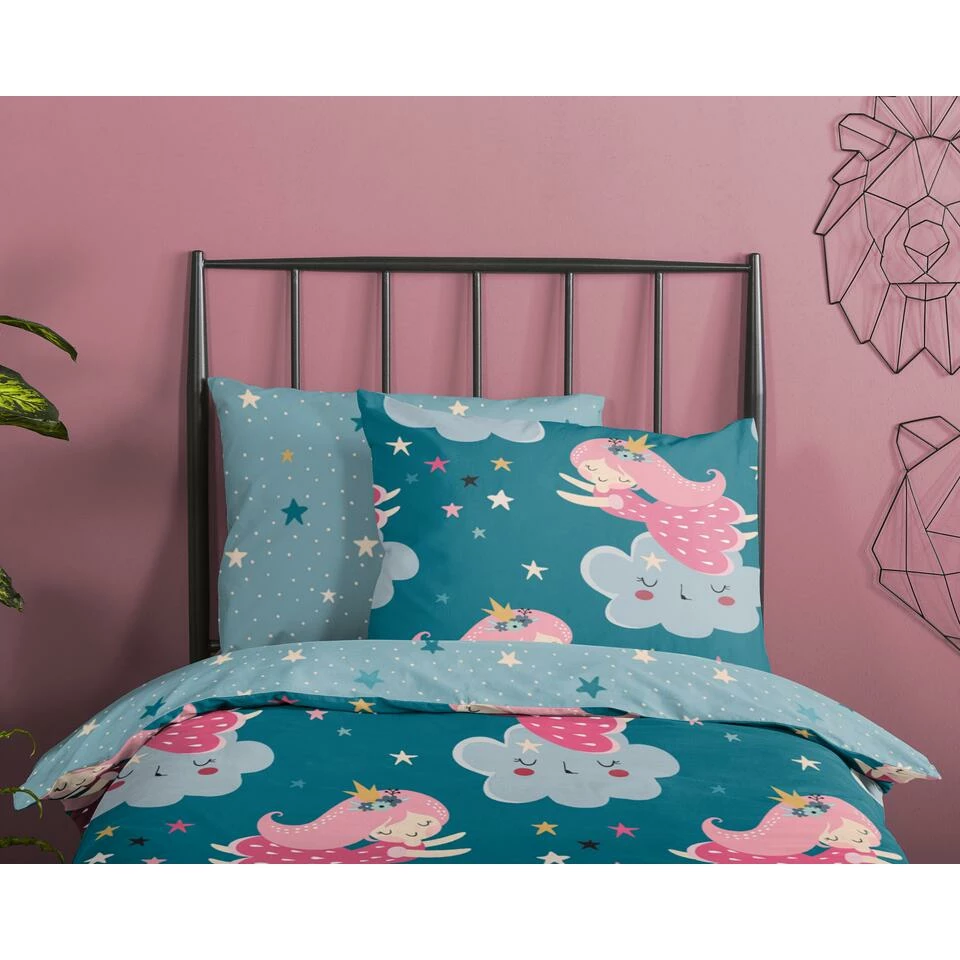 Dekbedovertrek “Princesse” van Good Morning met sterren, in de kleur “Petrol” is gemaakt van 100% Cotton. Deze kwaliteit is ademend, vocht absorberend en voelt zacht en soepel aan.