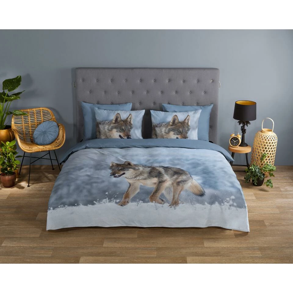Dekbedovertrek “Snow Wolf” van Good Morning met winterlandschap, in de kleur “Grijs” is gemaakt van 100% Cotton. Deze kwaliteit is ademend, vocht absorberend en voelt zacht en soepel aan.