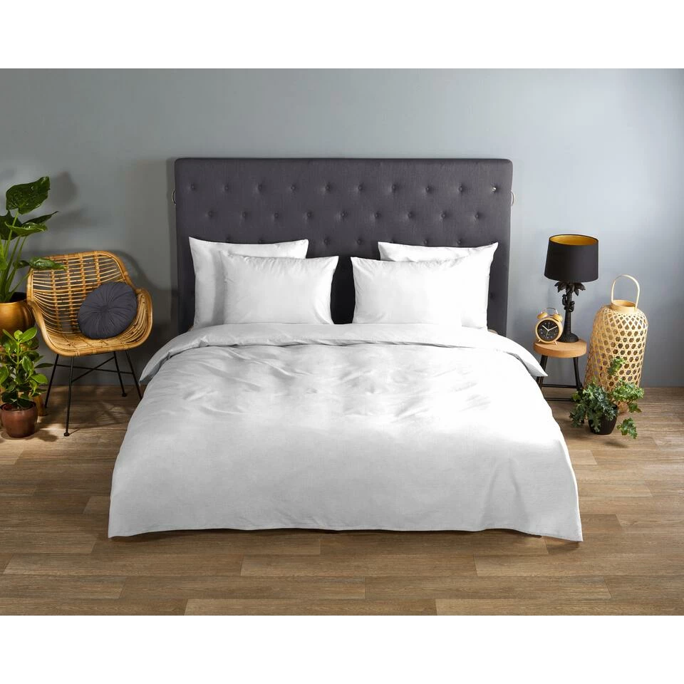 Dekbedovertrek “uni white” van Good Morning met uni dessin, in de kleur “Wit” is gemaakt van 100% Cotton. Deze kwaliteit is ademend, vocht absorberend en voelt zacht en soepel aan.