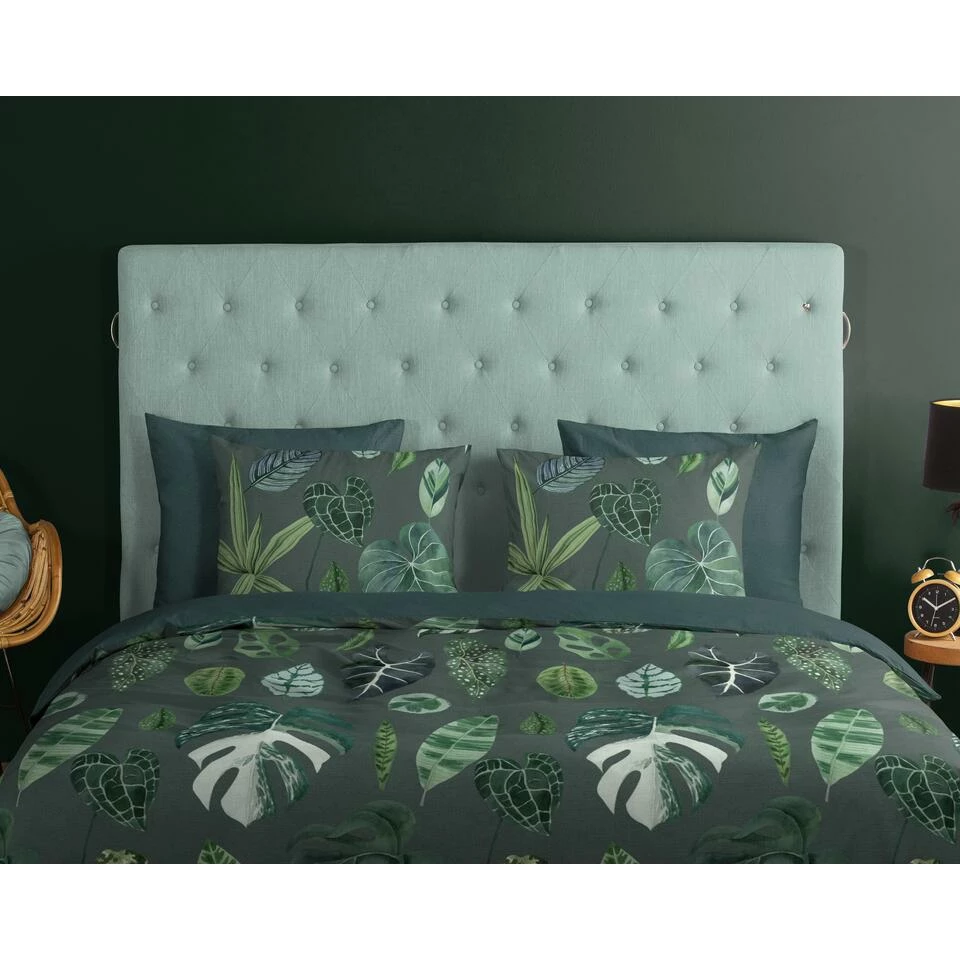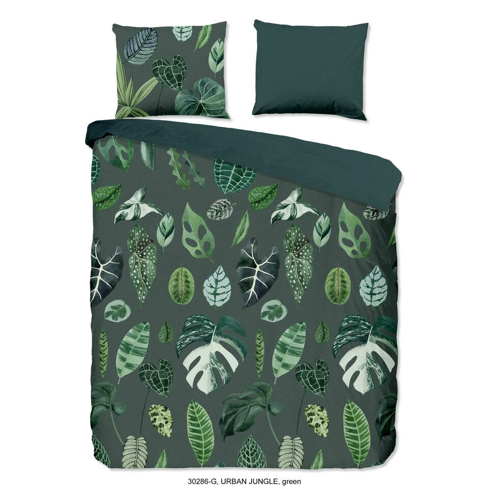 Dekbedovertrek “Urban Jungle” van Good Morning met bladeren, in de kleur “Groen” is gemaakt van 100% Cotton. Deze kwaliteit is ademend, vocht absorberend en voelt zacht en soepel aan.