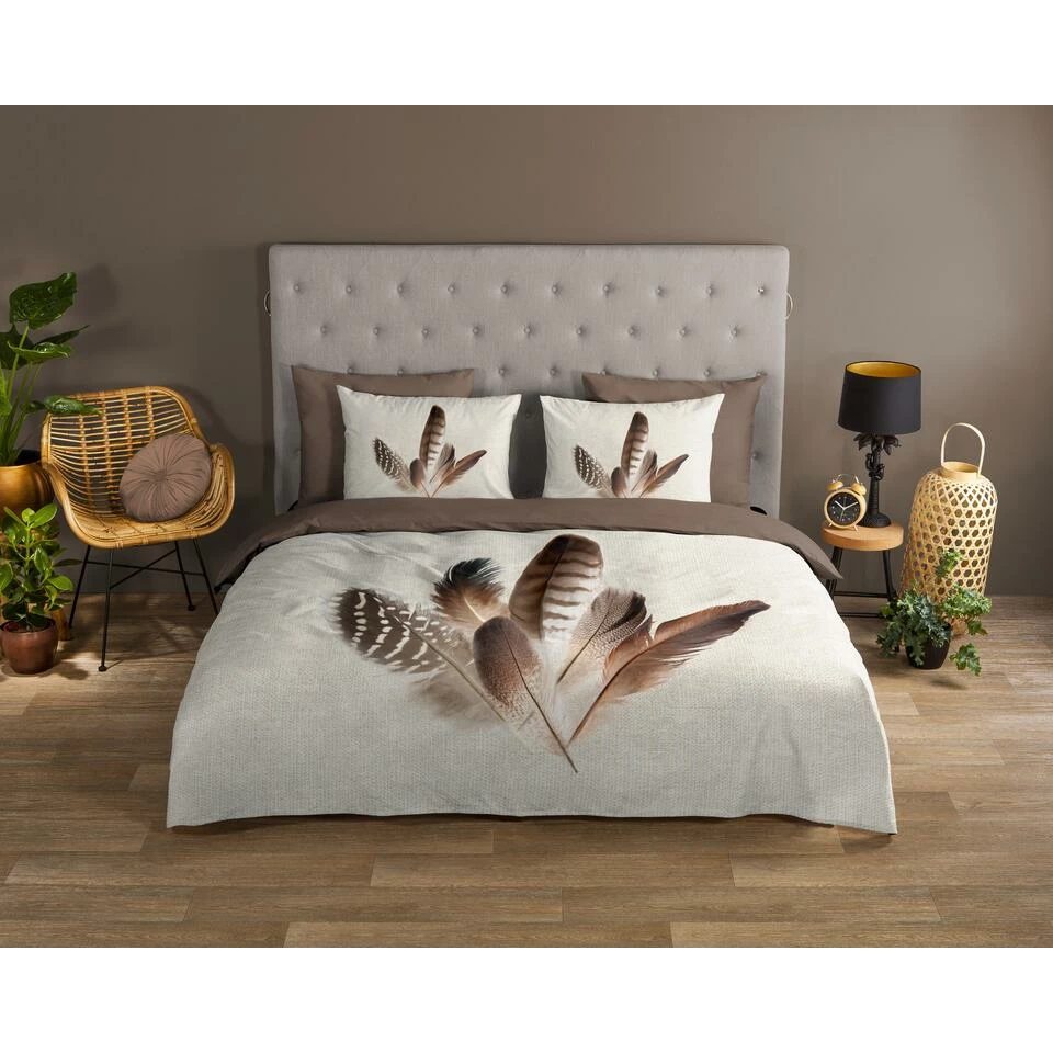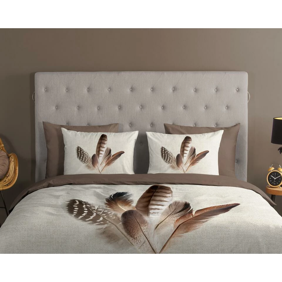 Dekbedovertrek “Veer” van Good Morning met veren, in de kleur “Zand” is gemaakt van 100% Cotton. Deze kwaliteit is ademend, vocht absorberend en voelt zacht en soepel aan.