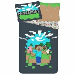 Minecraft Dekbedovertrek, Adventure. Dit stoere katoenen dekbedovertrek van Minecraft is een echte musthave voor de fans van dit gave spel. Droom jij ook over het bouwen op je boerderij? Dan wordt het slapen onder dit tweezijdig bedrukte overtrek en extra groot kussensloop een feestje! Een fantastisch cadeau voor een fan van dit computerspel. Ideaal om te geven voor een verjaardag of de feestdagen!
