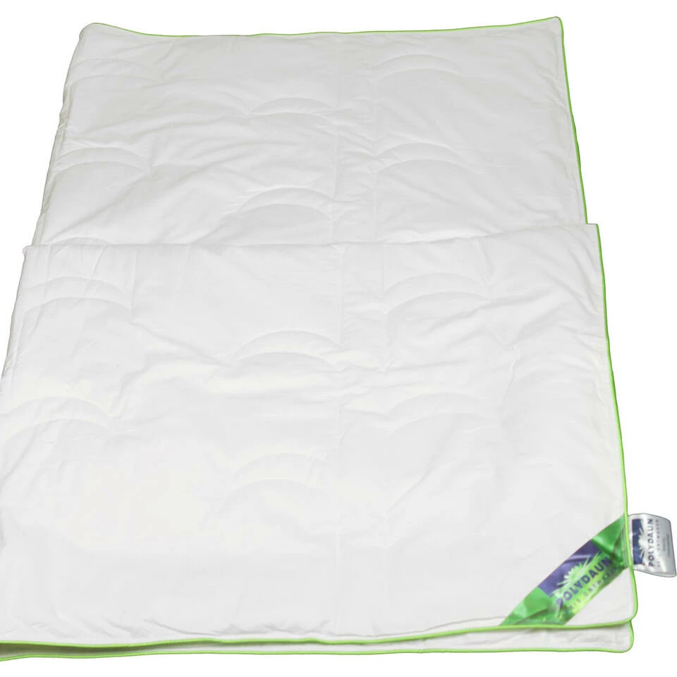 Polydaun zomerdekbed Bamboe heeft een bamboe vulling en een afmeting van 140×220 cm. Bamboe biedt optimale vochtregulatie voor dat extra uurtje slaap. In de zomer slapen we vaak net iets korter dan we zouden willen. Ga je te vroeg naar bed, dan slaap je in de hitte en ben je al wakker als het nog lekker koel is. Ga je pas slapen als het koeler is, dan mis je die belangrijke uren voor je herstel. Daar heeft Polydaun een oplossing voor bedacht: het bamboe dekbed. Het bamboe dekbed is het luxe alternatief voor het katoenen zomerdekbed. Bamboe voelt van nature koel aan, maar is ook licht in gewicht en daarom uitermate geschikt voor warme nachten. Bamboe heeft ook een uitstekende ventilatie en vochtregulatie en neemt maar liefst 40 procent meer vocht op dan katoen! Hierdoor worden bacteriën en schimmels geweerd en behoort klam wakker worden tot de verleden tijd. De zachte 100 procent perkal katoenen tijk voelt uiterst zacht aan, transpiratievocht wordt afgevoerd voordat het in de vulling kan trekken. Het stiksel heeft de vorm van een prachtige bamboestengel in reliëf. Het bamboe dekbed is eenvoudig wasbaar op 30C.