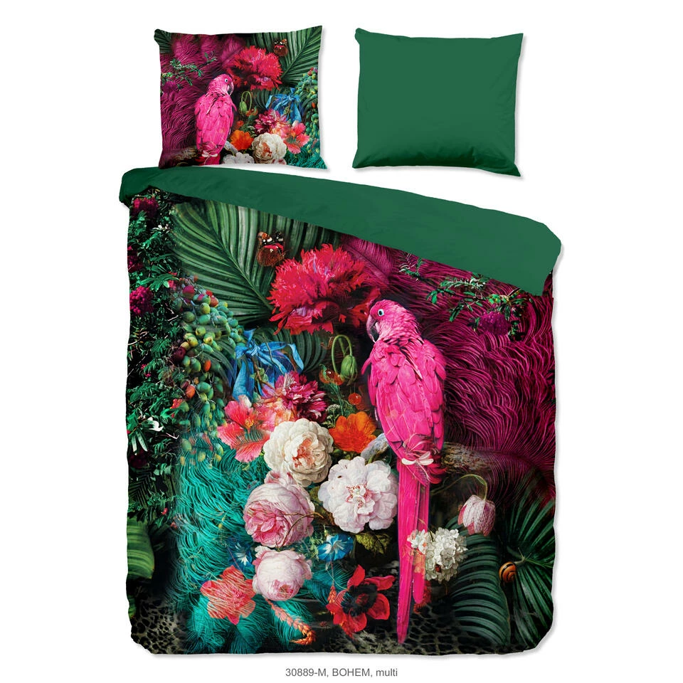 Dekbedovertrek “Bohem” van Pure met tropische jungleprint, in de kleur “Multi” is gemaakt van 100% Microfiber. Het is een prettige stof, gemaakt van synthetische garen maar vergelijkbaar met het natuurlijke materiaal katoen, doordat het zacht en soepel aanvoelt. Het is geschikt voor ieder jaargetijde en door de lichte glans heeft het een luxe uitstraling. Na het wassen is deze stof snel droog en kreukt niet tot nauwelijks waardoor strijken (vrijwel) niet nodig is. Ook beschermt het tegen bacteri’n, vuil en huisstofmijt
