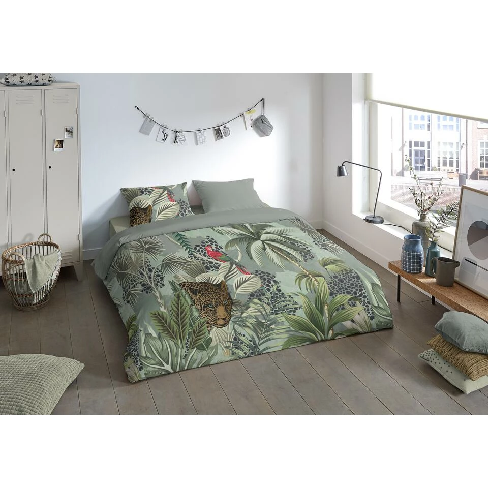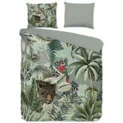 Dekbedovertrek “Isla” van Pure met jungle print, in de kleur “Groen” is gemaakt van 100% Microfiber. Het is een prettige stof, gemaakt van synthetische garen maar vergelijkbaar met het natuurlijke materiaal katoen, doordat het zacht en soepel aanvoelt. Het is geschikt voor ieder jaargetijde en door de lichte glans heeft het een luxe uitstraling. Na het wassen is deze stof snel droog en kreukt niet tot nauwelijks waardoor strijken (vrijwel) niet nodig is. Ook beschermt het tegen bacteri’n, vuil en huisstofmijt