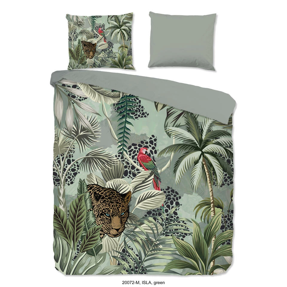 Dekbedovertrek “Isla” van Pure met jungle print, in de kleur “Groen” is gemaakt van 100% Microfiber. Het is een prettige stof, gemaakt van synthetische garen maar vergelijkbaar met het natuurlijke materiaal katoen, doordat het zacht en soepel aanvoelt. Het is geschikt voor ieder jaargetijde en door de lichte glans heeft het een luxe uitstraling. Na het wassen is deze stof snel droog en kreukt niet tot nauwelijks waardoor strijken (vrijwel) niet nodig is. Ook beschermt het tegen bacteri’n, vuil en huisstofmijt