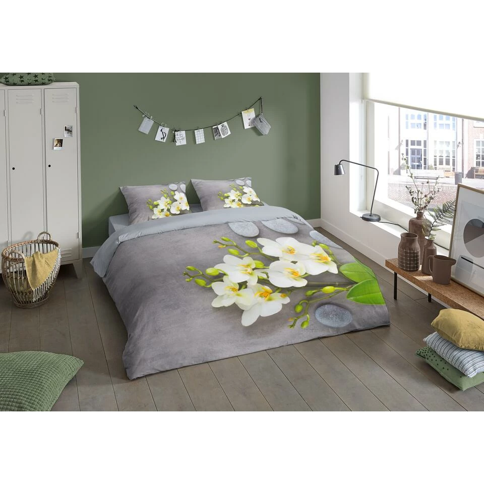 Dekbedovertrek “SRI” van Pure met bloemen, in de kleur “Grijs” is gemaakt van 100% Microfiber. Het is een prettige stof, gemaakt van synthetische garen maar vergelijkbaar met het natuurlijke materiaal katoen, doordat het zacht en soepel aanvoelt. Het is geschikt voor ieder jaargetijde en door de lichte glans heeft het een luxe uitstraling. Na het wassen is deze stof snel droog en kreukt niet tot nauwelijks waardoor strijken (vrijwel) niet nodig is. Ook beschermt het tegen bacteri’n, vuil en huisstofmijt