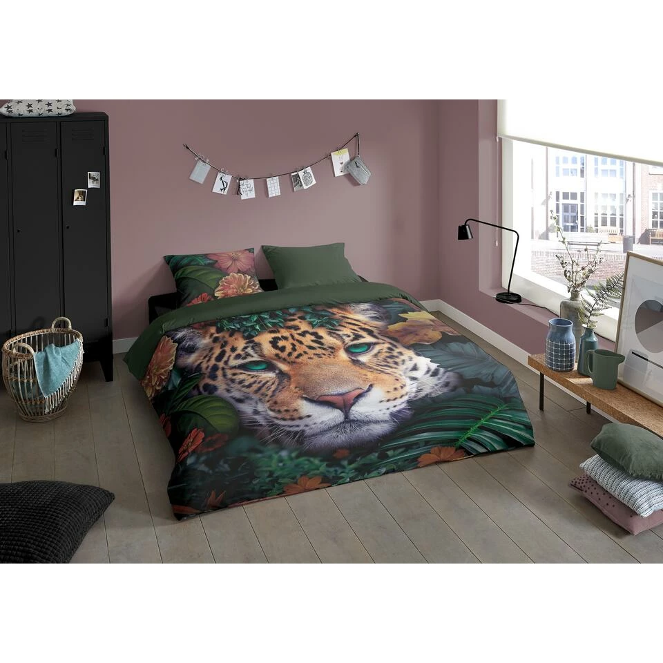 Dekbedovertrek “Wildlife Flowers” van Pure met luipaard, in de kleur “Multi” is gemaakt van 100% Microfiber. Het is een prettige stof, gemaakt van synthetische garen maar vergelijkbaar met het natuurlijke materiaal katoen, doordat het zacht en soepel aanvoelt. Het is geschikt voor ieder jaargetijde en door de lichte glans heeft het een luxe uitstraling. Na het wassen is deze stof snel droog en kreukt niet tot nauwelijks waardoor strijken (vrijwel) niet nodig is. Ook beschermt het tegen bacteri’n, vuil en huisstofmijt
