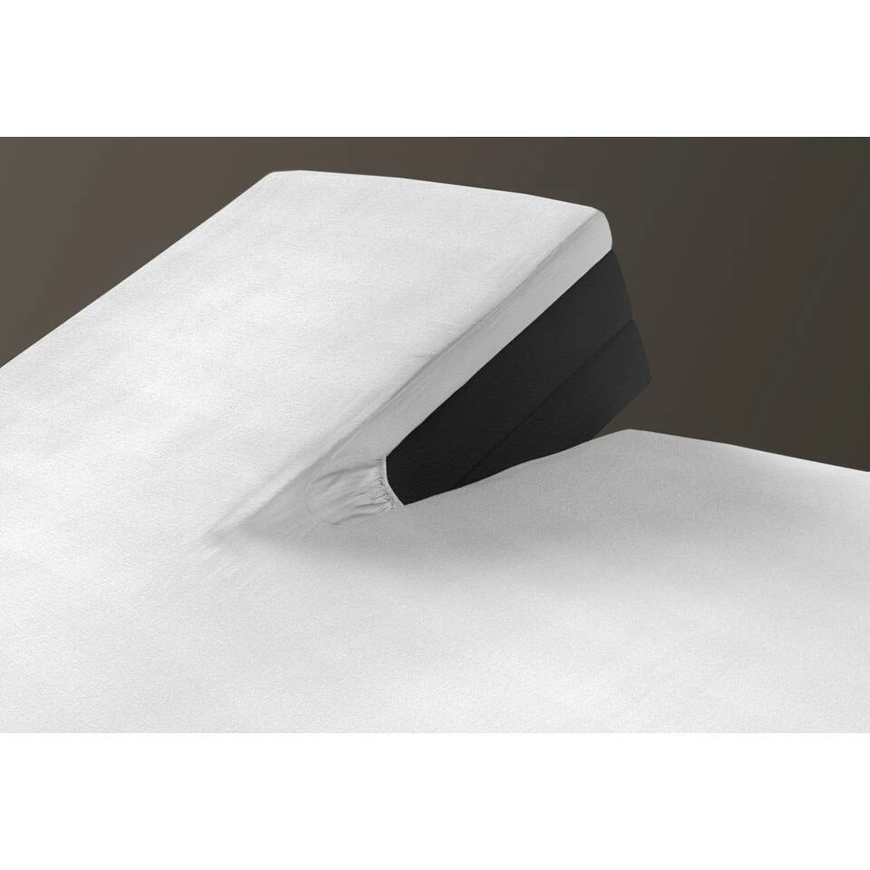 De set van 2 tweepersoons hoeslakens is verpakt in een splitset van 2 waardoor je de bovenste matrassen apart van elkaar kunt verplaatsen met circa 90-100cm.