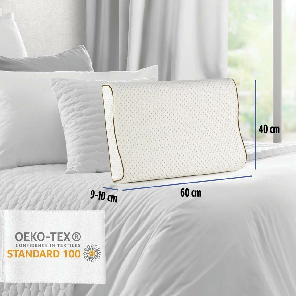 De anatomische vorm van het kussen biedt de beste ondersteuning voor rug- en zijslapers, de latex kern zorgt de flexibiliteit in het kussen tijdens de verandering van slaaphouding. Doordat dit kussen hoger is dan een normaal kussen is het perfect voor mensen met bredere schouders.