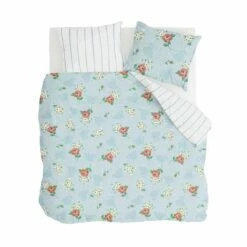 Het dekbedovertrek sluit helemaal aan bij de trend Retro Romance. Een klassiek overtrek met daarop een fijn werkje en romantische rode rozen. De blauwe achtergrond zorgt voor een verhelderend effect en de rozen maken het geheel compleet. De achterkant van het overtrek bestaat uit getekende lijnen in een zacht blauwe kleur op een witte ondergrond. Perfect om jouw slaapkamer af te stylen dus!